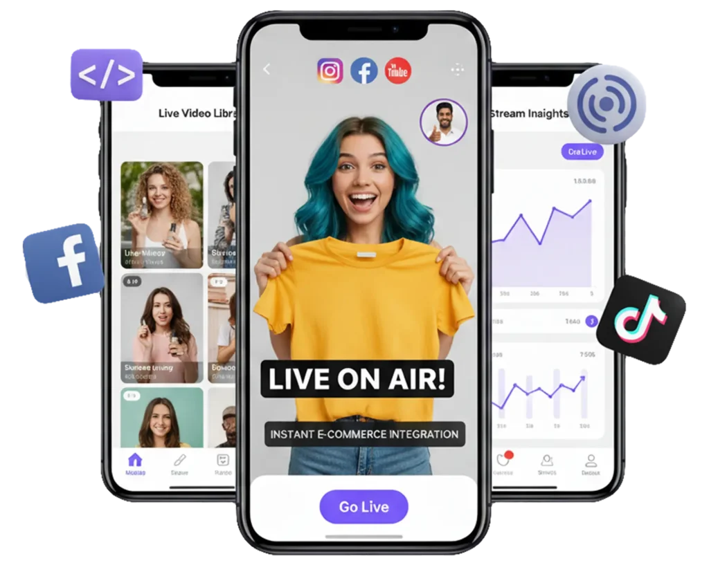 Start live streams from any location or device and instantly display them on your Shopify store.
